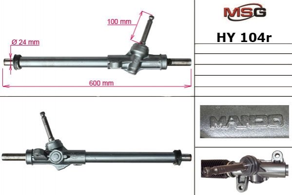 Запчасть Рулевая рейка без ГУР Hyundai Getz MSG HY104R подходит для таких моделей авто: Hyundai Getz (Хендай Гетц)