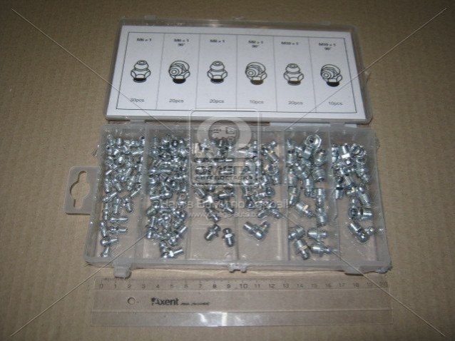 Підібрати та купити Набір прес-маслю, 110 шт. М6, М8, М10. Прямі та кутові 90гр. RIDER у нашому інтернет-магазині можна такими способами: