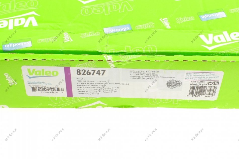 Комплект зчеплення Audi A3, TT, Ford Galaxy, Seat Cordoba, Ibiza, Leon, Toledo, Skoda Fabia, Octavia, Volkswagen Bora, Golf, Valeo 826747